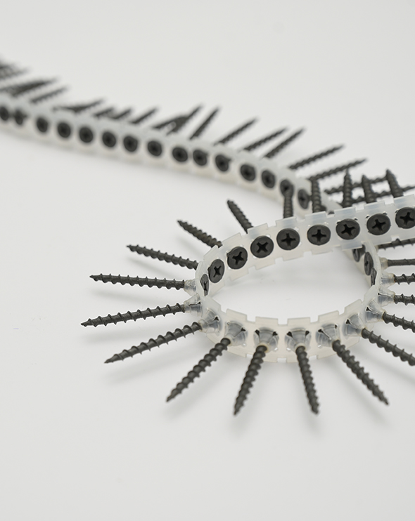 頂祺具備多樣且可靈活變換的沖孔模具系統,可依不同螺絲規格快速調整製程設定,將各式螺絲精準組裝於高穩定性的鏈帶結構上,實現高效率、低成本的製造優勢。